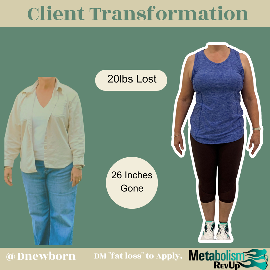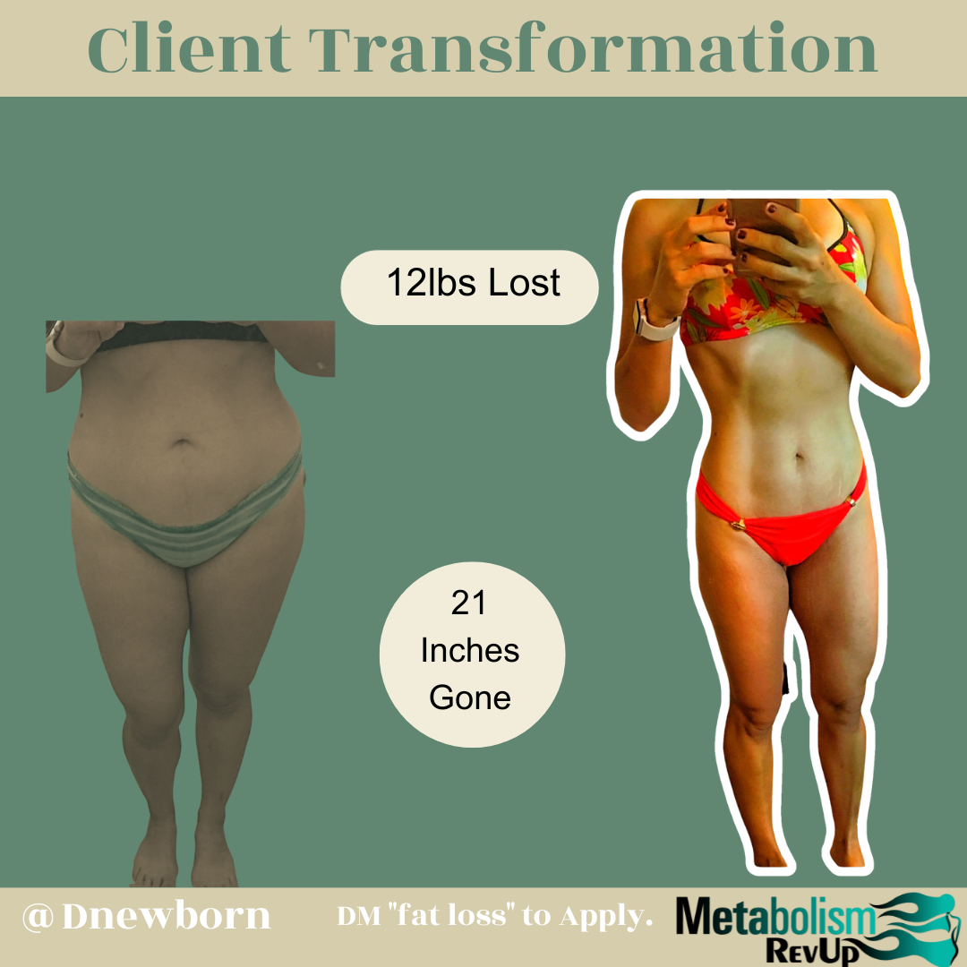 I mold your program around your individual needs and your daily lifestyle preferences to reach your goals as quickly as possible. Apply now and we will have a conversation to see if you're a good fit for a Metabolism RevUp goes here